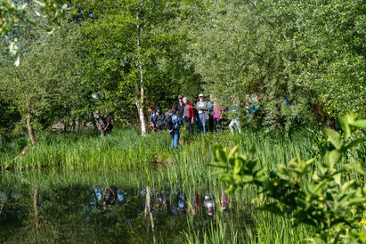 Rund 70 Teilnehmende fanden sich am 18. Mai zur Morgenexkursion ein, die von den goldgelben Schwertlilien am Äschweiher zu den goldgelben Ankeblüemli der Wässermatte und schliesslich zu den goldgelben Blüten der Ginsterheide führte.