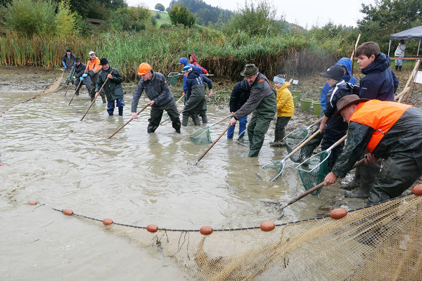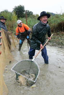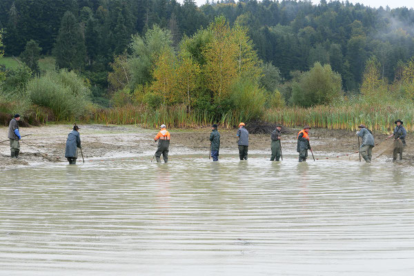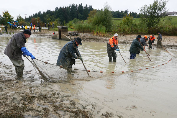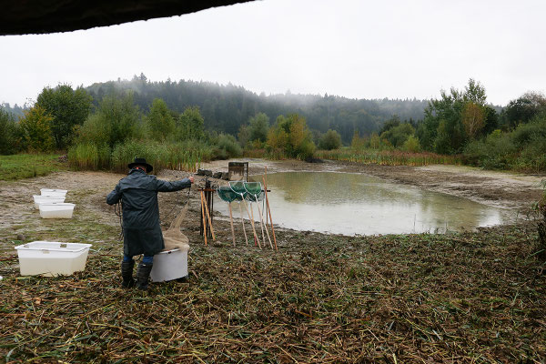 Am letzten Septembersamstag wurde mit dem grossen Eichmattweiher der erste Karpfenteich der Saison abgefischt.