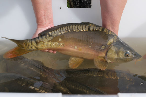 Nachdem die grossen Karpfen gewogen und die Jungtiere nach Grösse sortiert waren, konnten die K3 zur Kloster-Metzgerei nach St. Urban geliefert werden. Von dort werden sie neu der lokalen Gastronomie und Kundschaft im Laden als wohlschmeckende Filets angeboten.